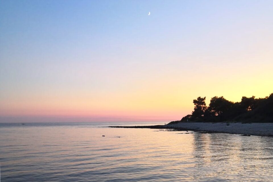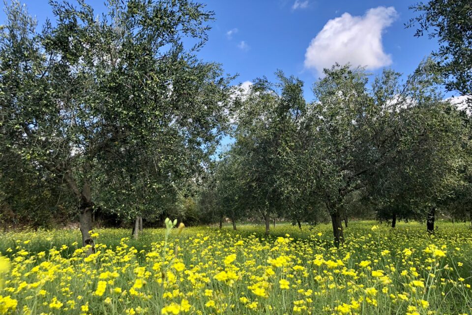 << Sul terrazzo al primo piano della casa rustica la mattina era tiepida e un leggero venticello rallegrava le prime ore della giornata. I rami degli ulivi nella campagna vicina ondeggiavano e un dolce leggero frinire delle cicale faceva intuire che il risveglio della natura stamane era sereno. Sollevando appena lo sguardo, a perdita d’occhio un’immensa distesa verde: olivi, roveri, ginestre, ginepri, biancospini, alcuni vigneti, campi di terra rossa e infiniti muretti di pietra calcarea costruiti a secco delimitavano i terreni. In questa estesa macchia i paesini si distinguevano per il loro colore bianco e rosa e per i campanili che accudivano le case. Di fronte, scendendo per cinque chilometri, il verde si tuffava nel blu del mare, … >>